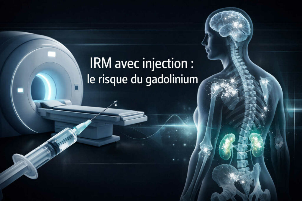 Lors de certaines IRM, on injecte un agent de contraste à base de gadolinium pour améliorer la lisibilité de l’examen. Le principe est simple : mieux distinguer une inflammation, une lésion, une tumeur, une vascularisation anormale. Sur le plan diagnostique, l’intérêt peut être décisif. Dans bien des cas, l’injection ne relève pas du confort médical, mais d’un gain réel d’information.